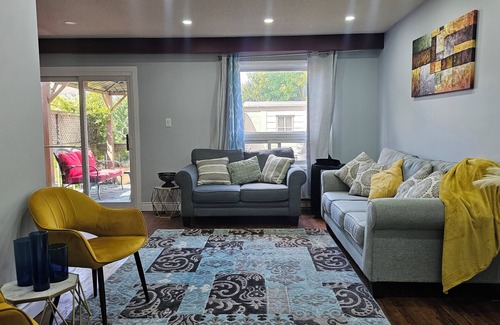 Located in a quiet and friendly neighborhood with all amenities and attractions just a few km away! 2 car parking on driveway. House is equipped with a full kitchen with all cooking equipment, pots, pans, cutlery, plates etc. Towels, fresh bedsheets, pillows, blankets are all provided.