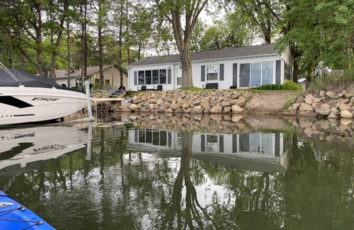 Newly remodeled cozy 3 bedroom lake cottage located right on the lake. Large living room with sectional couch and full dining area. New fully-equipped kitchen. Patio doors open to the lake. Charcoal grill and fire pit. Sit on the deck enjoying the lake view or enjoy lake activities like paddle boating, kayaking, fishing and boating. Paddle boat and 2 kayaks for guest use. NO SMOKING IS PERMITTED.