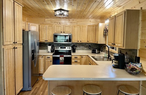 Awesome newly remodeled cabin. No windy/curvy roads. FULLY FENCED YARD WITH SWING SET SAFE FOR PETS AND KIDS.