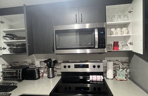 1 bed room 1 bathroom , dedicated in unit laundry space, full kitchen , dining and living room space with sofa bed suitable for business or vacation travelers.. Entire unit is offered to be booked with no shared tenants.