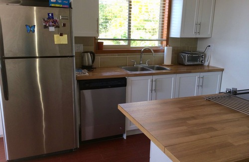 This newly built private suite is a perfect place to relax and unwind after exploring all that Sechelt has to offer. Features a full kitchen open living and dining area, comfortable bedroom and full bathroom with a glass enclosed shower. TV, Wi-Fi, laundry, stove, dishwasher and all the usual bed and bath essentials are included. Close to downtown with diverse restaurants, bistro and pubs and easy beach access. and a lovely seawall to stroll and refresh the sea breeze in the evening. Sechelt in native language means Land between two seas, the Sechelt Inlet and the ocean.