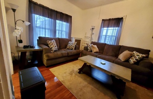 3 Bedrooms, 1 bathroom bi-level apartment with private porch balcony. 2 Full size beds, 1 twin size bed with memory foam, smart tv in every room, wireless internet and ample storage space. Each bedroom comes with a heated blanket, electric space heater and mini fridge.
