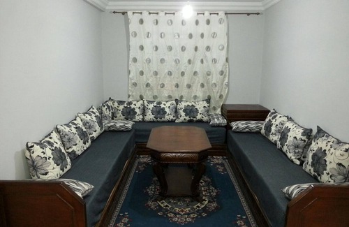 The apartment, located on the 2nd floor, contains 2 bedrooms (the 1st with a large bed "160cm x 200cm" and the 2nd with 2 separate beds "90cm x 190cm") and 1 Moroccan living room, large TV, kitchen (Fridge, Microphone -wave, Dishes…), WC, Shower.