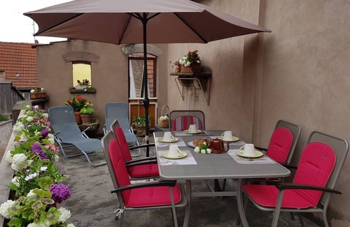 (4 adults and 1 child), a spacious bathroom, a fully equipped kitchen and a 32 sqm terrace make for a comfortable stay in our beautiful Alsace.