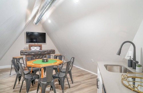 –To note: While fully rehabbed in 2024, this home is over 100 years old, and therefore, a bit funky in its layout. The kitchen does have limited countertop space and the game room bathroom is a bit awkward in its layout. We did our best to rehab it to be more functional, but we simply see these “less than perfect” items as part of the historic charm. We just like to point them out in advance so that there aren’t surprises when it comes to the apartment. Our kids loved playing hide and seek during the rehab process, but the unit itself can feel a bit like a corn maze if you’re directionally challenged. (Hah!)
