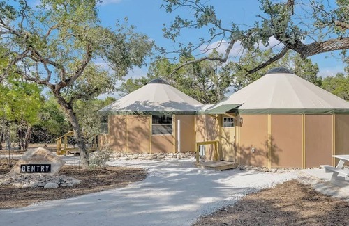 Experience the perfect blend of adventure and comfort at Gentry, a spacious and modern yurt nestled in the scenic Texas Hill Country at Freedom Yurt Resorts. With 490 sq. ft. of thoughtfully designed living space plus a roomy 264 sq. ft. loft, Gentry is ideal for families or friends looking for a unique and unforgettable getaway.