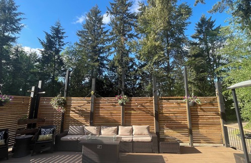 Relax in our comfortable three bedroom dome home with lots of privacy. Unique setting in the woods; not a development. Start your day with a work out in the swim spa and end by soaking in the spa under the stars. Large deck with bbq, eating area and outdoor bar with sectional and a propane fire table. Three king size beds with luxury linens. Master bedroom is a Westin Heavenly bed. One spare room has adjusting vibrating beds. Two baths. Full kitchen complete with cooking utensils and spices for a gourmet meal. Lots of cooking tools & kitchen "toys"! Minutes from freeway and WA State Fair & Event Center (aka The Puyallup Fair). Mount Rainier, Seattle and Ocean Beaches all within a short day drive. Nestled in the trees. Four ponds; three with water falls so you can have morning coffee by the fountain and occasionally watch a deer and fawn graze. Bunnies love to munch on the garden. Depending on season, help yourself to any fresh items in the garden if the deer or bunnies don't beat you to it. Basketball hoop on property. Lots of board games for family time.