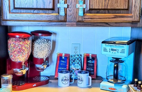 Full walkout basement is my personal residence. I am remodeling/ updating this historic home, as I can....time & money. I invite you to enjoy my home and property. The location is perfect for hunters & anglers. Breakfast / Coffee Bar has coffee, tea, hot cocoa, cereal, pancake/waffle mix & waffle maker.