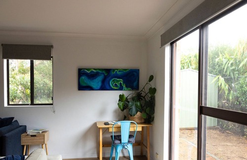The duplex sits on the ground floor and has been furnished with casual comfort and relaxation in mind. A well-stocked original kitchen will delight you with its vintage treasures and has everything you need for a cook up. Enjoy your meals in the eat-in kitchen area or head outside to the outdoor setting where you can hear the waves. There are two good-sized bedrooms, with one queen bed and two singles will accommodate your group, there is also a day bed in the living area that can sleep an additional guest or child. A single bathroom with walk-in shower and a laundry completes the picture.