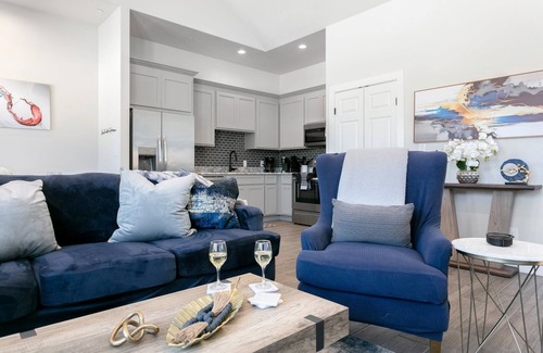 Experience ultimate relaxation and convenience at GinGin's Cottage; a modern one bedroom suite with a private hot tub, full kitchen, and washer/dryer. Located in the heart of the Hill Country on a quiet street, this cozy haven is perfect for a romantic getaway or a solo retreat. The bedroom offers a King bed and a full ensuite bath, while the sleeping nook in the living room brings the total occupancy to 4! Guests can enjoy the private hot tub and grilling area on the back patio, while the ambience fireplace and open-concept living area are perfect for relaxing at the end of the day. Book your stay now and indulge in the comforts of home while exploring all the history and entertainment Fredericksburg has to offer. Don't miss out on this unforgettable experience!