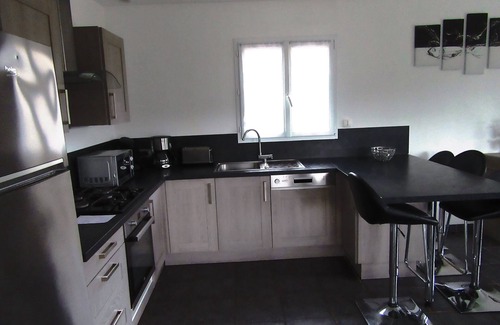 3 bedrooms 3 bathrooms, 8 beds + 2 convertible in the living room which can make 2 more beds. Washrooms with Italian showers In each room, one with a bathtub. TV and DVD player, wifi. Dining room for 8/10 people, kitchen with dining area for 4 people. Dishwasher, fan oven, microwave, basic filter coffee maker and SENSEO pod coffee maker, kettle, toaster. A laundry room with washing machine, dryer, table and iron. baby equipment, bed, high chair, bath, deckchair, stroller.