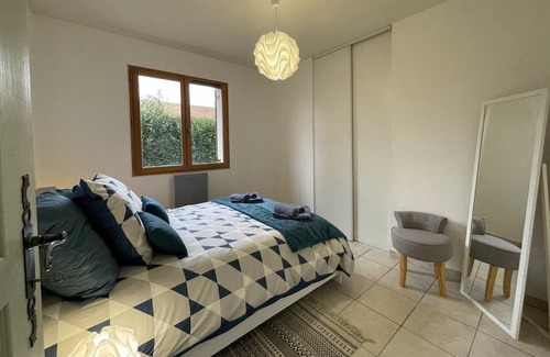 Enjoy views of the pastures. Let yourself be lulled by the sounds of nature. This place brings together a few houses, you can benefit from the advantages of the city and the countryside. Ground floor: equipped kitchen, living room with different spaces and access to the bright veranda, furnished with a cozy atmosphere. 2 bedrooms for 2 people, a bathroom with massage jet shower and spa bath. Independent toilet Double garage allowing you to park a medium-sized car. For your comfort, this house is equipped with an alarm which can be deactivated with the badge provided. Electric heating and wood stove in the living room. Enclosed land 2500m2 with indoor swimming pool 8x4m depth of 1.20 to 1.60m ovoid shape, which is accessible from May 15 to September 15 depending on weather conditions. The advantages of the gîte: relax, everything is included except end-of-stay cleaning. You choose. High chair travel cot with a real mattress, changing table, bathtub, reducer are at your disposal. Flat screen television, Barbecue or plancha, Optional cleaning, Washing machine, Dishwasher, Fireplace -Wood stove, Baby bed, Baby gîte, Enclosed grounds, Single storey, Games for children, Electric heating, Garden furniture, Private swimming pool , Microwave, Wifi or Internet, Terrace, Garden, Garage, Sheets provided in the price, Bathroom linen provided, Freezer, indoor swimming pool, ok 1 month, Long term rental, Last minute rental, conv, Parking, Individual house. Option to be paid on site: - Optional end-of-stay cleaning: €50. Property managed by a professional. Unless stated, services such as cleaning, bed linen, towels etc. are not included in the price of this rental. If pets are allowed (information in the advertisement), charges may be applicable. Only equipment mentioned in this advertisement are present. Equipment not mentioned are not considered to be present.