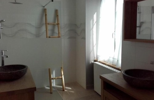 Halfway between Le Mans and Sablé sur Sarthe, family home located in a small village with shops. Shaded and flowery park offering a fully enclosed natural area, ideal for idleness or family games. Ground floor: fully equipped kitchen, living-dining room with fireplace. WC. Lingerie. 1st floor: 3 bedrooms, 1 bedroom with 160 cm bed, 1 bedroom with 160 cm bed and 1 90 cm bed, 1 bedroom with 140 cm bed. Shower room with large walk-in shower. WC. 2nd floor: mezzanine with 1 double bed, 1 bedroom with 2 single beds. Bathroom with large corner bath, WC. Beds made on arrival. Oil central heating included. outside: ping pong table, children's games table (table football, billiards, shuffleboard, basketball). Sun bathing. 2 bicycles available. Tourist tax in addition. Contact owners: caroline.jerome0179@orange.fr or 07.71.27.49.29. Optional services to be paid on site and to be reserved before your arrival: - Towels: 6.38€ per stay City toursit tax, due opon arrival