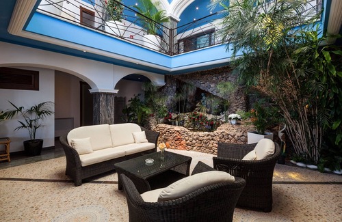 The luxurious lounge areas are plentiful and beautifully styled as are the fully equipped modern kitchen and dining areas. There is a bar and an inner courtyard with a natural waterfall giving a feeling of freshness and tranquility.