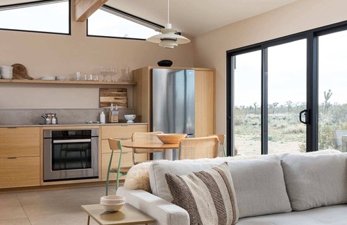 Welcome to Goat Mountain Rising by Homestead Modern, a serene retreat with a heated pool and 360-degree views of Goat Mountain and Mount San Jacinto. - Spacious queen bedroom with private patio - Fully equipped modern kitchen - Pet friendly with EV charger - Close to The Integratron and Joshua Tree National Park Everything at your fingertips and more, when you book with us today!