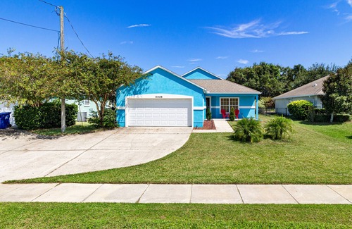 This Beautiful Pet Friendly home is located on the beach side of A1A with a short trail and neighborhood walk to a pristine white sandy beach. It has 1800 sf living space with one King size bed, one Queen, two Trundle twin beds and two comfortable pull out couches in the living room, each with a queen size mattress. Fully stocked kitchen, three TV's with hundreds of cable channels, Hi speed internet and wifi, double car garage, fully fenced in back yard with grass area for your furry friends and a covered patio area equipped with gas grill, patio table and chairs. Also we have bicycles, beach towels, boogie boards, beach chairs, sand toys, an umbrella and a beach cart for easy transport.