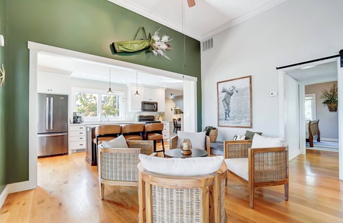 The accommodating home boasts two full bathrooms and a convenient half bath accessible from the living area. All are stocked with pampering towels and necessities to ensure a carefree stay.