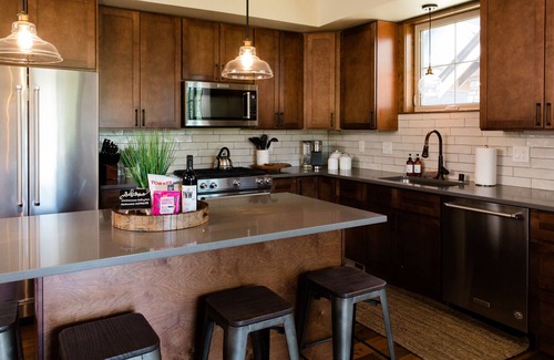 We know vacationers love to have one giant space that can accommodate the entire group! The great room with vaulted ceilings and open layout alongside the dining table and kitchen are ideal for making meals, playing board games or streaming the big game.