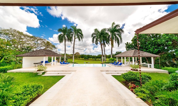 Fully staffed property including Butler. Caribbean-style living with large en-suite bedrooms/common spaces and a beautiful pool and heated jacuzzi area overlooking the golf course.