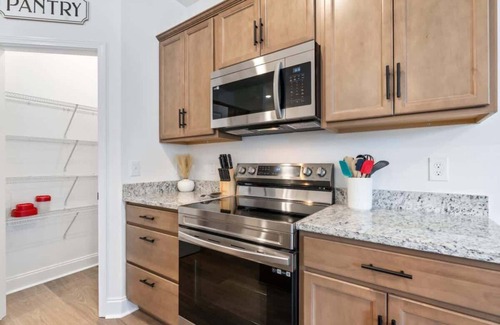 This new construction 3-bedroom, 2.5-bathroom condo offers cozy bedrooms, modern bathrooms, a fully equipped kitchen, and a dedicated workspace with high-speed internet. Relax in the inviting living area with a flat-screen TV and reclining couch or enjoy a meal at the dining table. Conveniently located near the Great Smoky Mountains National Park and Knoxville, it includes amenities like a washer and dryer, air conditioning, heating, and complimentary parking. Book your stay today and experience comfort and convenience in beautiful Maryville, Tennessee. We invite all of our football fans to stay as we are 16 miles from Neyland Stadium.