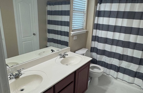 Welcome to this charming house in San Antonio. This marvelous property boasts 5 bedrooms, including 1 king bed, 3 queen beds, 1 full bed, and 1 twin bed. With 3 bathrooms equipped with hair dryers and showers, guests will feel right at home. AC, heating, and an iron are just a few of the amazing amenities provided. It's easy to see why you'll be able to unwind at our place. Easy access to highway and minutes from downtown San Antonio.