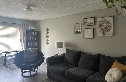 This beautiful townhome has everything you need and is greatly located within miles of attractions, theme parks, colleges, and hospitals in the Orlando area . Nestled in the small neighborhood of Moss Cove Townhomes, this corner unit home is fully equipped with washer/dryer, a 72" flatscreen TV, "his and hers" sinks in the renovated upstairs bathroom, two large closets in each of the bedrooms and a very comfortable couch. A desk is located in one of the bedrooms and a TV is located in the other. There is a bookshelf filled with a variety of genres as well as a furnished, screened-in porch. Two property managers are available and located close by in case of urgent house matters.