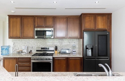 Indulge in the epitome of comfort and style with this exquisite 3-bedroom condo. Elegantly furnished, each room exudes a harmonious blend of luxury and warmth, ensuring a delightful stay for up to 8 guests. Revel in the privacy of individual bathrooms for each bedroom, with the added convenience of an extra half-bathroom for guests.