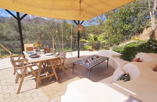 Casa Kapurthala is a luxurious accommodation near El Chorro (Álora) and the Caminito del Rey. It is equipped with all the necessary comforts to make you feel right at home. We rent out the casa for 5 people with a fully equipped kitchen, but it is also possible to reserve an extensive breakfast and/or a freshly prepared dinner. The casa is tastefully decorated and features a delightful sun terrace that offers stunning views of the mountains and the valley. Our organic orchard provides delicious seasonal fruit throughout the year.
