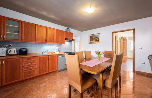 Spend a relaxing summer vacation in this Istrian semi-detached house with outdoor pool in the quiet village of Golubovo. The vacation home stands on a spacious and fenced plot, which includes an olive grove. Since the domicile consists of two separate apartments, it is ideal for two families or a group of friends who want to travel together and still keep your privacy. One apartment is located on the first floor, while the second is spread over the first floor and the second floor. On the first floor terrace with a massive wooden table you will have enough space to spend social hours outdoors and at the barbecue. The owner is a professional fisherman, there is a possibility to organize a boat trip with him. You will be introduced to special fishing skills or you can simply be taken by boat to swim or go on an excursion on Brijuni.