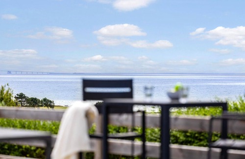 Cozy, high situated cottage with panoramic view of the Great Belt and the bridge.