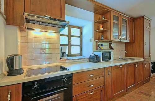 Casa Atilio and Ana is a charming old Istrian stone house in the quiet village of Smolici, just 19 kilometres from Porec and its beautiful beaches. This delightful retreat offers a lovely garden with a swimming pool, perfect for cooling off on warm days. Enjoy an al fresco meal on the covered terrace, which is equipped with a brick barbecue and sink for preparing meals, or relax with a drink on the rattan furniture, which is ideal for unwinding with a good book. The holiday home is spread over two floors. On the ground floor there is a cosy living room with a fireplace and a well-equipped kitchen with a dining table. The first floor is divided into two parts: the first with two bedrooms (one with two single beds, the other with a double bed) and a bathroom/WC; the second part has two double bedrooms with a shared shower/WC. During your stay, explore nearby Porec and the breathtaking Basilica of Euphrasia, a masterpiece from the 6th century. Porec, rich in cultural heritage, invites you to travel back in time within its ancient city walls. Please note that this property does not accept youth groups or stag and hen parties. A youth group at this property consists of persons aged 26 years or younger.