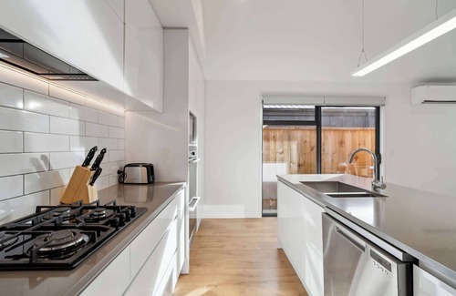 This stylish home features a spacious open-plan layout with a contemporary kitchen, dining area, and lounge. Three comfortable bedrooms provide restful spaces for families or groups. Large windows flood the home with natural light.