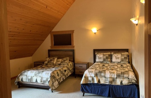 With 6 bedrooms, 3.5 baths and additional futons, loft beds and air mattresses, the lodge can sleep up to 30 guests comfortably not including couches. Our kitchen table seats 14 with 4 additional breakfast bar seats and a small seating area off to the next room. The kitchen is fully equipped to accommodate large meal service.