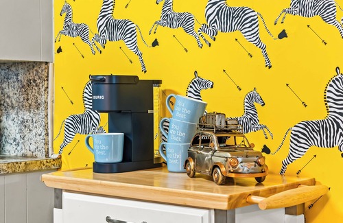 This funky and vibrant lakefront house is brimming with character, blending eclectic charm with modern comforts.