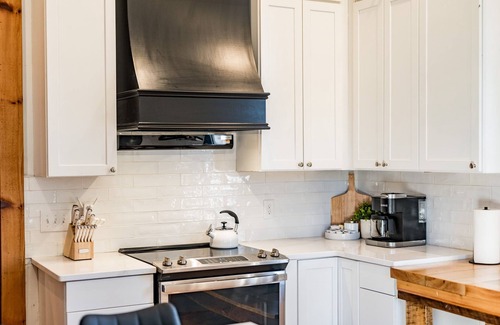The downstairs temperature is controlled by central heat and air, and each of the upstairs bedrooms and hallway have their own ductless mini-split with remote for guests to control their desired temperature!