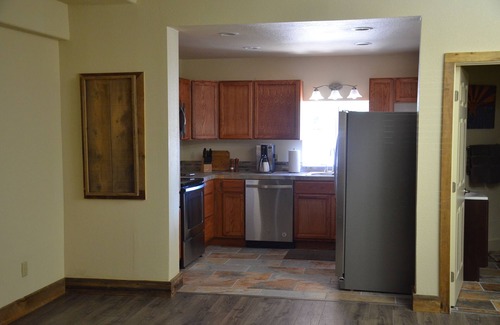 The Grand Canyon Brewery Cabin has been completely refurbished top to bottom. The cabin has all new stainless steel appliances, furniture, bedding everything in this home is new. The cabin is a two-story 2,124 square ft. home. The upstairs bedrooms share a bathroom. Each room has a King size bed and each have their own private deck. The downstairs bedroom has two Queen size beds. The second bathroom is in the downstairs. The 3 spacious bedrooms make this home the perfect place for group getaways, family reunions, or simply for those who like a lot of space