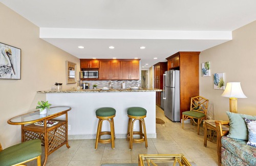 Experience the best of Maui at Ma'alaea Banyans 314, where relaxation and adventure await! Unit 314 is a 1-bedroom, 1-bathroom condo that can accommodate up to 4 guests and offers direct ocean views. As you walk into the open-concept living area you're instantly met with Aloha vibes, enjoy panoramic views from your private lanai! The living room features a large flat-screen TV, a sofa sleeper for extra guests, and split AC in the bedroom and living room for comfort. The well-stocked kitchen offers a culinary playground with granite countertops and stainless steel appliances. Just bring your groceries!