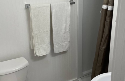 Full Kitchen, queen bed, wifi TV, full bathroom. Lovely table with 4 chairs inside and a gas grill/patio table.