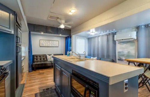 The RV has recently been renovated! Brand new flooring and paint, new hardware and lighting throughout and new furniture. New AC unit that other RV's won's have. You will appreciate this in the hot summer months! We hope it makes your stay much more enjoyable!