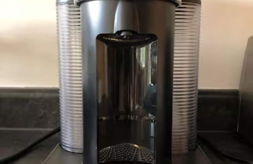 The kitchen is fully equipped (bar fridge, microwave, toaster, kettle, Nespresso coffee machine, milk frother, dinnerware, glasses and stemware, pots & pans, etc.). We also provide fair trade, organic tea and an assortment of compostable coffee pods. The room has a large bathroom, equipped with a double soaker/jacuzzi tub with jets (no shower—though there is a shower nozzle in the tub), toilet, and an antique wood vanity with a vessel sink and fountain faucet. We provide 100% organic cotton towels, a hairdryer, hand soap, body soap, shampoo and conditioner.