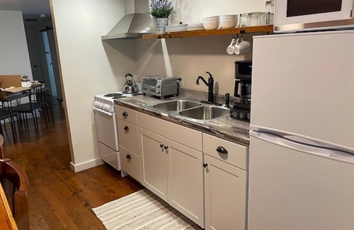 GeneralElectric kettle, Cable TV service, Number of bedrooms - 2, Square feet - 582, Spices, Stovetop, Bathtub only, Ceiling fan, Blender, Square meters - 54, Kitchen, No rollaway/extra beds, Iron/ironing board, Television, Toaster, Bed sheets provided, Hair dryer, Free WiFi, Microwave, Pets not allowed, Towels provided, Ping - 16.4, Air conditioning, Number of bathrooms - 1, Cookware, dishware, and utensils, Private bathroom, Heating, No cribs (infant beds), Freezer, Oven, Refrigerator |