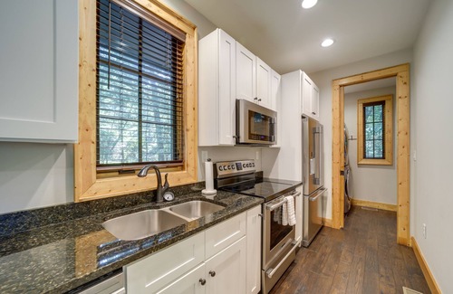 Welcome to your new happy place! This newly constructed Glenville vacation rental provides the perfect backdrop for your next trip to an upscale outdoor adventure resort. With incredible indoor and outdoor spaces, this 2-bedroom, 2-bath home has everything needed for an unforgettable retreat — including a covered porch with a fireplace and access to top-notch resort amenities! After a day of outdoor adventure, cozy up around the fire pit and enjoy the beautiful lake view.