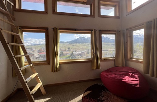 The house has 18 windows facing south into the park highlighting the stunning views of 11,000 ft Electric Peak. You can literally look out the windows, or off the deck and see: elk, antelope, deer, and occasionally bears and wolves roaming the hillsides of Yellowstone. Bring your binoculars!