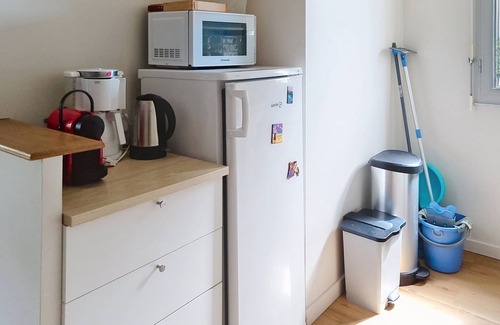 Appartement en rez de jardin comprenant un séjour donnant sur une veranda accés jardin avec une cuisine ouverte equipée avec frigidaire congélateur, lave vaiselle, bouilloire, cafetière fitre et cafetière NESPRESSO, micro - onde, four et plaque de cuisson induction, une première chambre deux couchages avec un lit superposé 90x190, une deuxième chambre avec un lit double de 140x190, une salle d'eau avec machine à laver, un w-c indépendant.