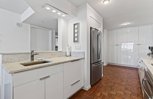 Inside, the open-concept layout features a fully equipped kitchen with stainless steel appliances, modern finishes, and all the essentials for easy vacation meals. The living and dining areas are thoughtfully furnished for comfort and style, with large sliders that lead directly out to the balcony overlooking the pool deck and ocean beyond. With a crisp, modern design and plenty of natural light, Vitamin Sea Condo is the ideal spot for both quick getaways and extended stays.