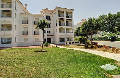 This modern ground floor apartment is located on the Hacienda Riquelme Golf Resort. Part of the Polaris World development, it is 20 minutes by car to the beach and 20 minutes to the city of Murcia.