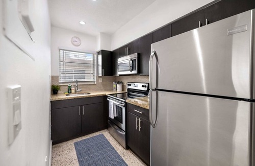 Grove 27 is simply paradise, it is an escape from the hustle and bustle of Miami, and a staycation unlike any other. Spend the day exploring by car, bike, or scooter and return to your peaceful home away from home. Have some fun while you're relaxing and take pictures at our Flamingo Instagram Wall - your friends & family will love to see all the fun you're having. The natural light and cozy living space provides guests with a memorable experience. A quick entrance from the parking lot to the apartment door ensures minimal contact with other visitors and safe, clean hallways.