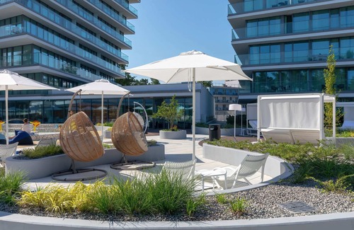 The apartment is part of the Wave Resort & SPA located in Międzyzdroje on Gryfa Pomorskiego Street. Guests will find many attractions and amenities such as swimming pools, sauna and underground parking. Travellers with children will appreciate the adapted paddling pool, indoor playroom and outdoor playground. The resort is also very close to the beach, so watching the sunset or sunrise can become a holiday staple. There is also a unique restaurant, the Wave Beach Concept, where you can enjoy local cuisine right on the beach. From May to June there are also attractive events to make your stay more enjoyable. There is no better place to stay in Międzyzdroje! It is located right next to the beach and the main attractions of Międzyzdroje - the promenade and the pier. Here you can fully enjoy the charm of the town, great restaurants, shopping and services.