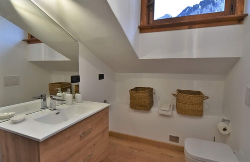 3-room apartment 74 m2 on 3rd floor. With sloping ceilings, fully renovated in 2023, comfortable and modern furnishings: living/dining room with 1 double sofabed, dining table, TV and heating stove. Exit to the balcony. 2 double bedrooms with sloping ceilings. Kitchenette (oven, dishwasher, 4 induction hot plates, toaster, kettle, electric coffee machine, Capsules for coffee machine (Nescafè Dolce Gusto) free). Shower/bidet/WC. Heating. Parquet floors. Small balcony. Balcony furniture. Panoramic view of the mountains and the garden. Facilities: children's high chair, baby cot, hair dryer. Internet (WiFi, free). Please note: fridge without freezer, non-smokers only. 014012-CNI-00038
