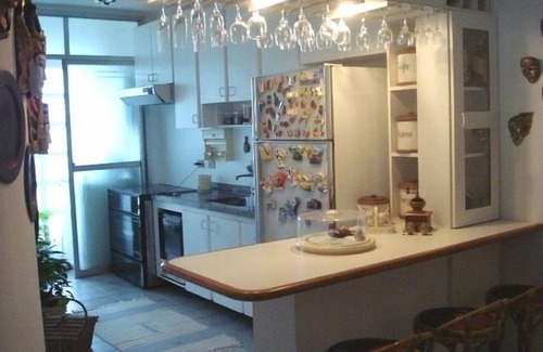 Apt finely decorated, with Indian details, with large living room, small balcony with furniture, dining room for 04 people, American kitchen, full of cabinets and balloon for meals. Full laundry and social bathroom, with box and cabinet. Independent lifts for each wing of the units. 01 covered parking space. Distant approximately 400 meters from the beach. Good commercial structure in the immediate vicinity.
